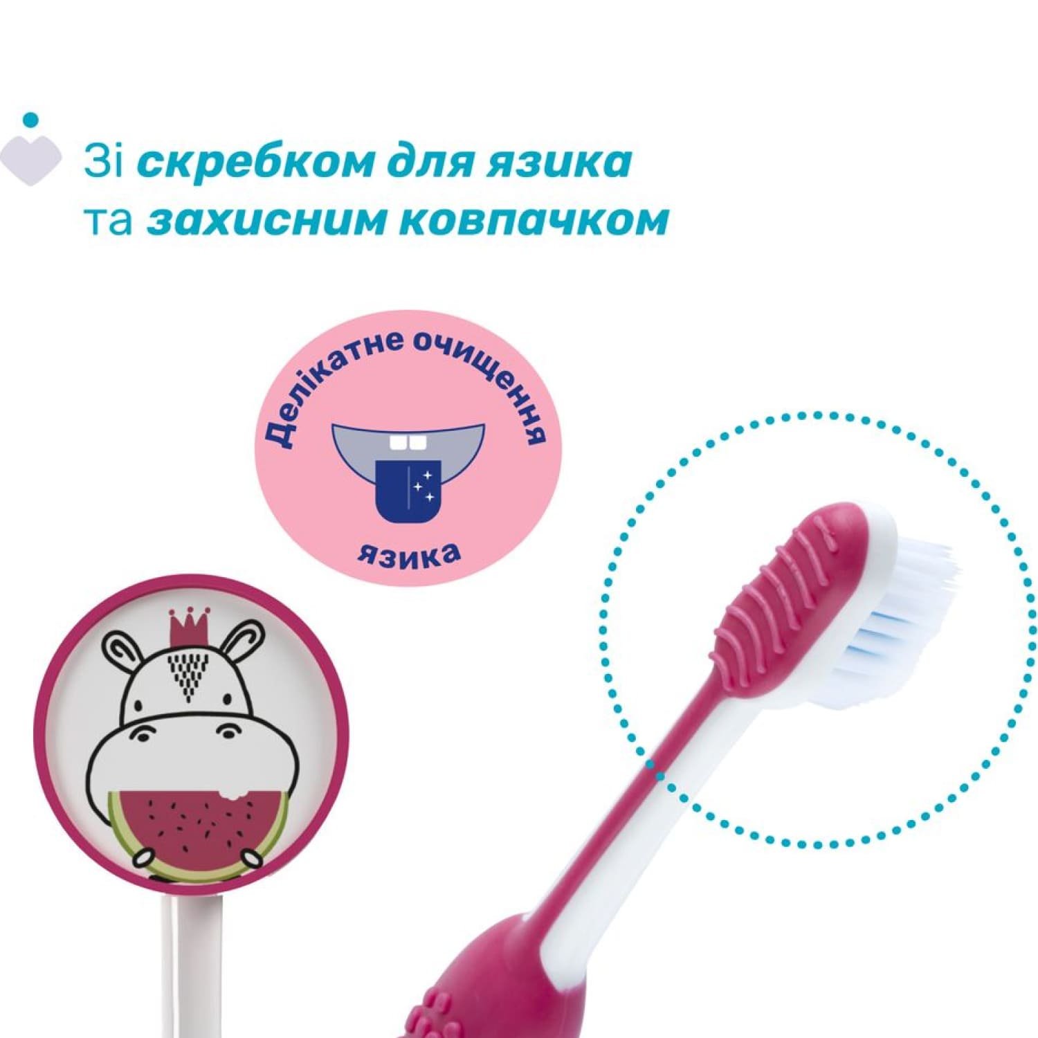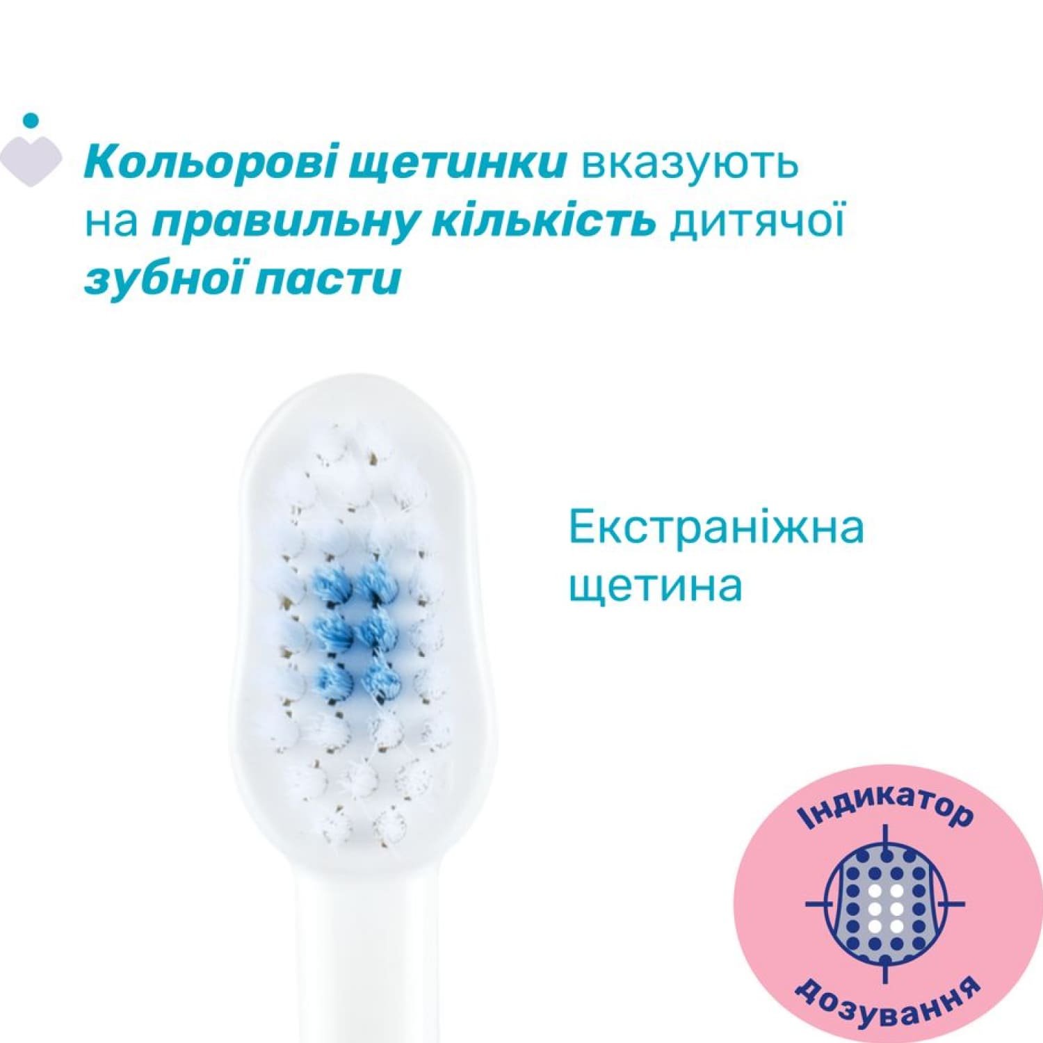- щітка забезпечує ефективний догляд за дитячими зубами та допомагає формувати здорові звички гігієни ротової порожнини з раннього віку;